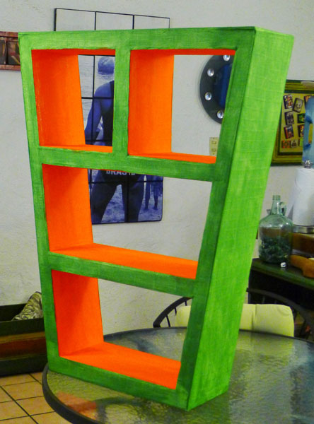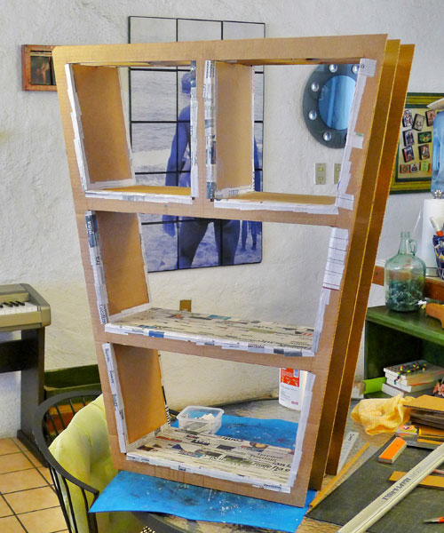 This bookshelf is the result of having treated myself to a brand-new flatscreen TV sometime late last year. I held on to the box because it was huge, and it was made of double-layer cardboard, ideal for a larger piece of furniture, such as this one.