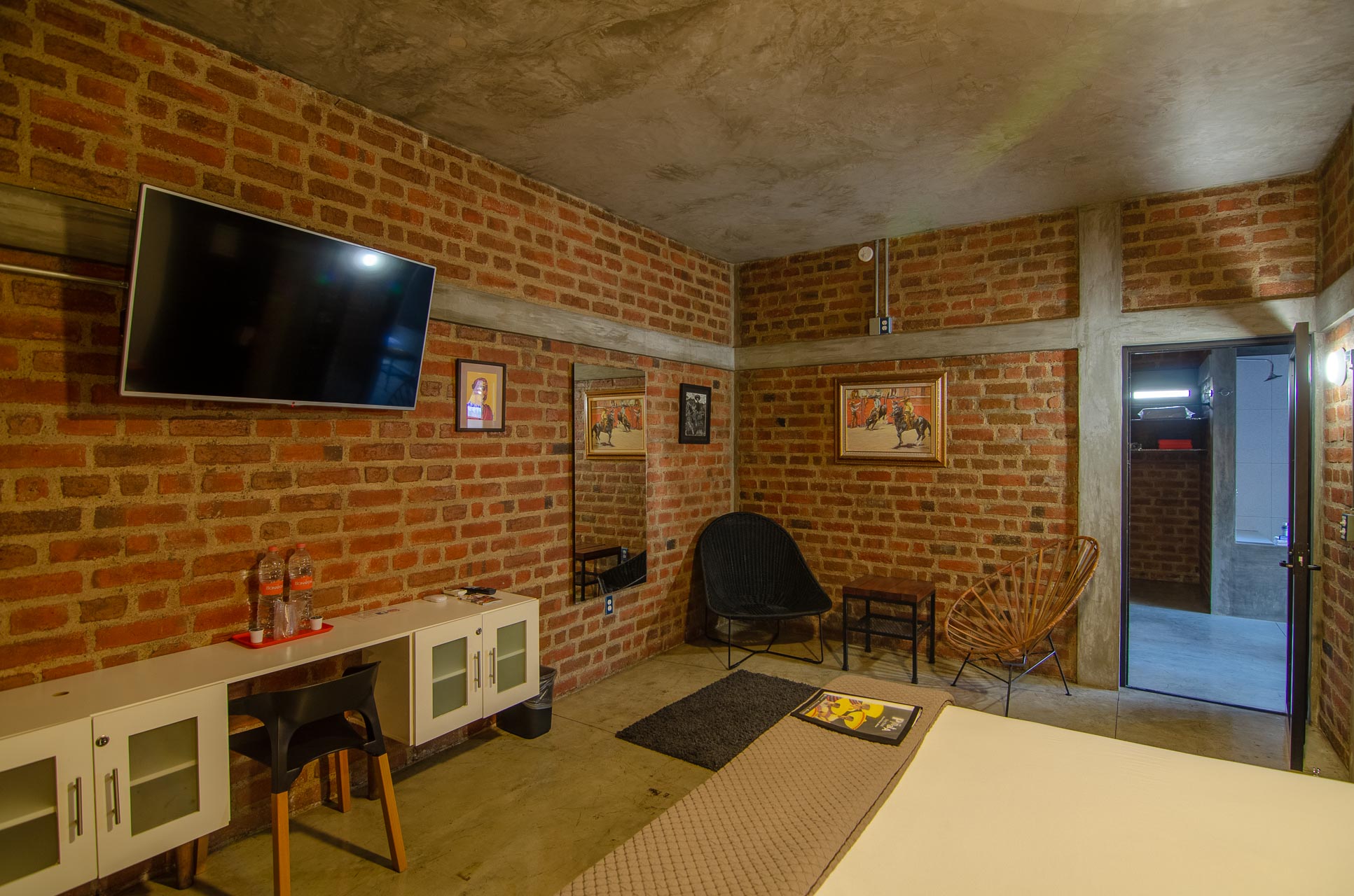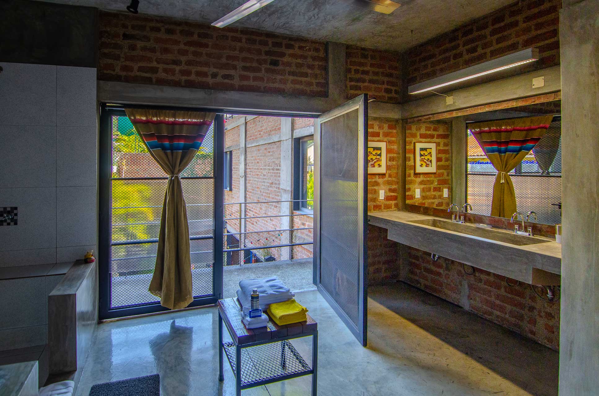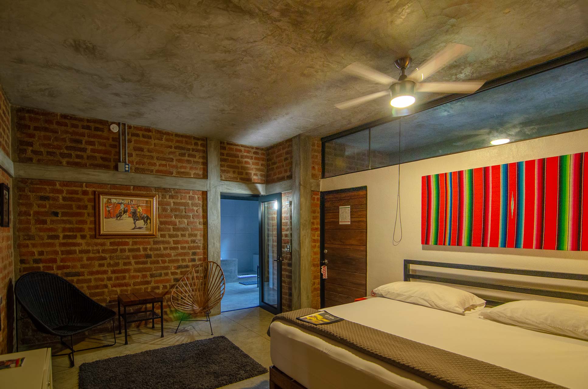 A place like Piñata can pack so much charm and allure in such a small footprint, thanks to the amazing architectural and interior designed provided by David, that can be easily summarized to traditional Mexican meets modern style loft lodging. Exposed brick and concrete provide the basic color palette, with every wall featuring carefully selected art that reflects the Mexican playful spirit of the hotel and its surroundings. Additional works of art can be found at Carranza Art Gallery, an adjacent space the owners have just acquired and opened, where you will also find an extensive collection of homoerotic art.