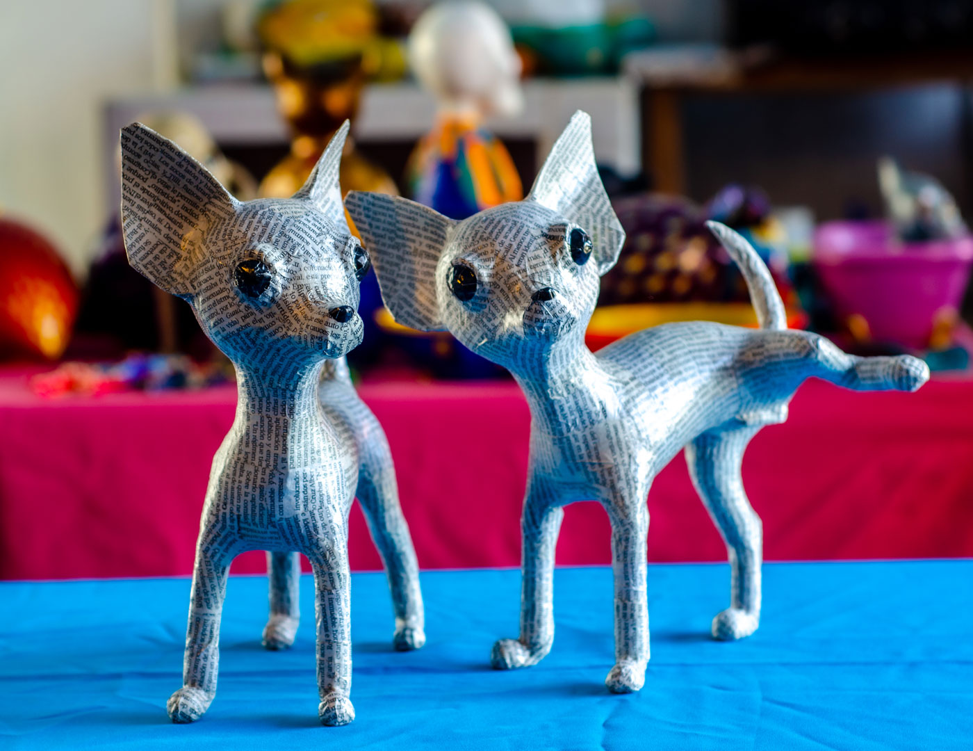 While in Guadalajara, Mauricio happened to recall the Tio Nacho incident and decided to teach his partner the craft. Alberto had been trained in metal turning and much to their surprise, took to paper mache like fish to water, using wire structures to create designs of his own. Together, they began creating paper mache figurines for fun and gift-giving. Among them, a whimsical, nameless Chihuahua known simply as el perrito came to be.