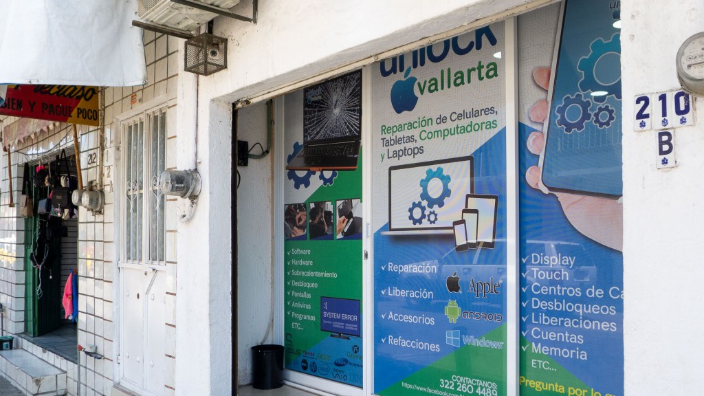 Unlock Vallarta is not an authorized Apple repair center, as far as I can tell, but they do offer a 45-day guarantee on all their services. When it comes to photography or electronics, I would always choose and recommend an authorized repair center whenever possible. But I felt perfectly at ease trusting Unlock Vallarta with my older iPhone. If you dread parting from yours when it fails, try Unlock Vallarta. They are one block away from Pitillal’s main plaza at Hidalgo 210, or find them on Facebook.