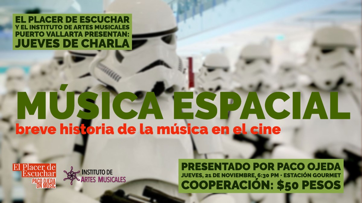 If your Spanish chops are good, you are welcome to attend November’s lecture, titled Música Espacial e Historia de la Música en el Cine, (or Space Music and Brief History of Film Music). The lecture will take place at IAMPV’s campus on Thursday November 21 at 6:30 PM. If you show up and don’t speak Spanish, I promise to hold your hand, musically, so you can at least get the gist of it!