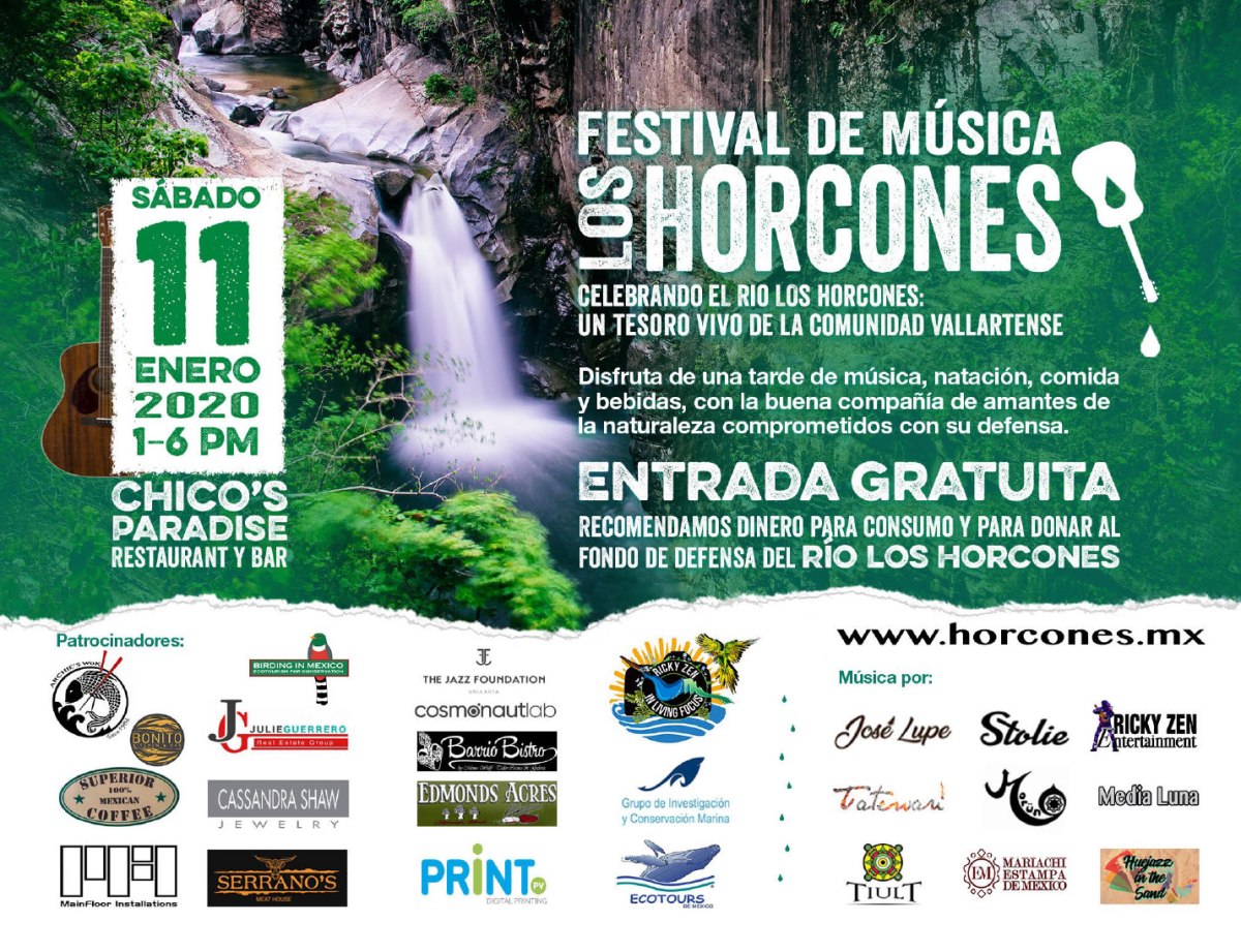 Los Horcones Music Festival, a new event to take place this Saturday, January 11, 2020, at Chico’s Paradise in Puerto Vallarta’s South Shore is an excellent opportunity to get out of town, enjoy the talent of several renowned local bands in a natural setting, and raise awareness about Los Horcones River, the last river that still reaches our Bay in its wild and un-dammed manner. The festival will start at 1 pm, continuing until 6 pm.