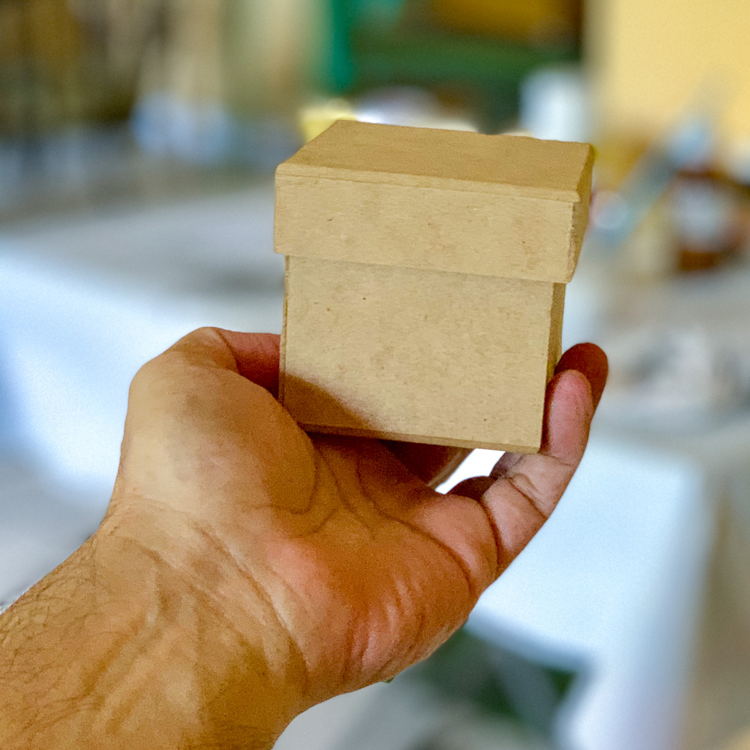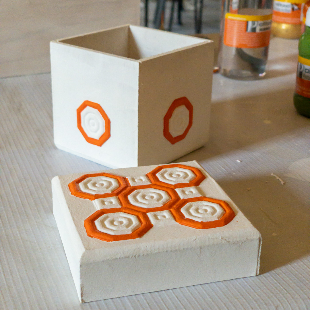 Now came time to paint the box with the acrylics I always have on hand. I’m shamelessly drawn to green and orange. In fact, should you ever visit my home and spot decorative objects in these colors, chances are I made them!