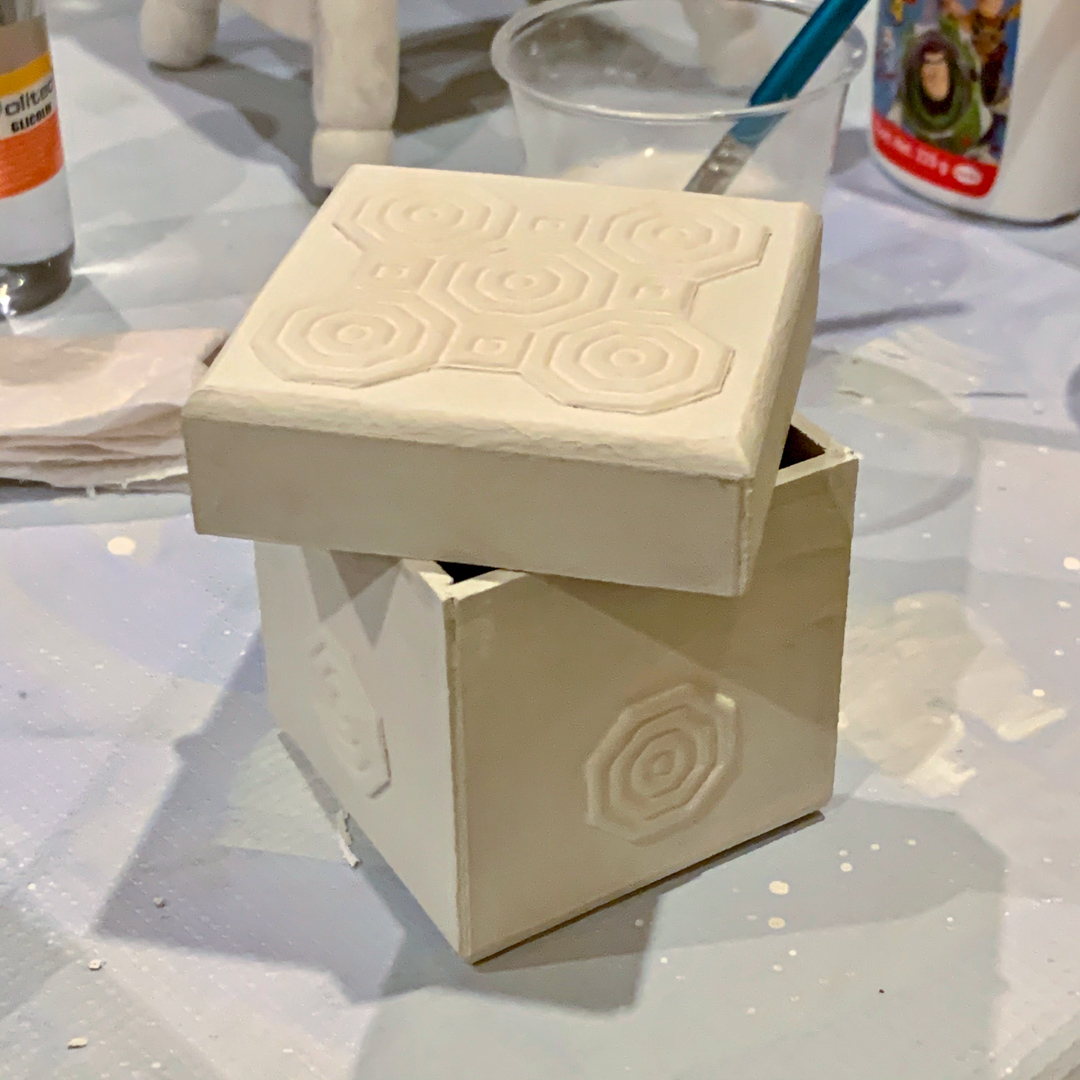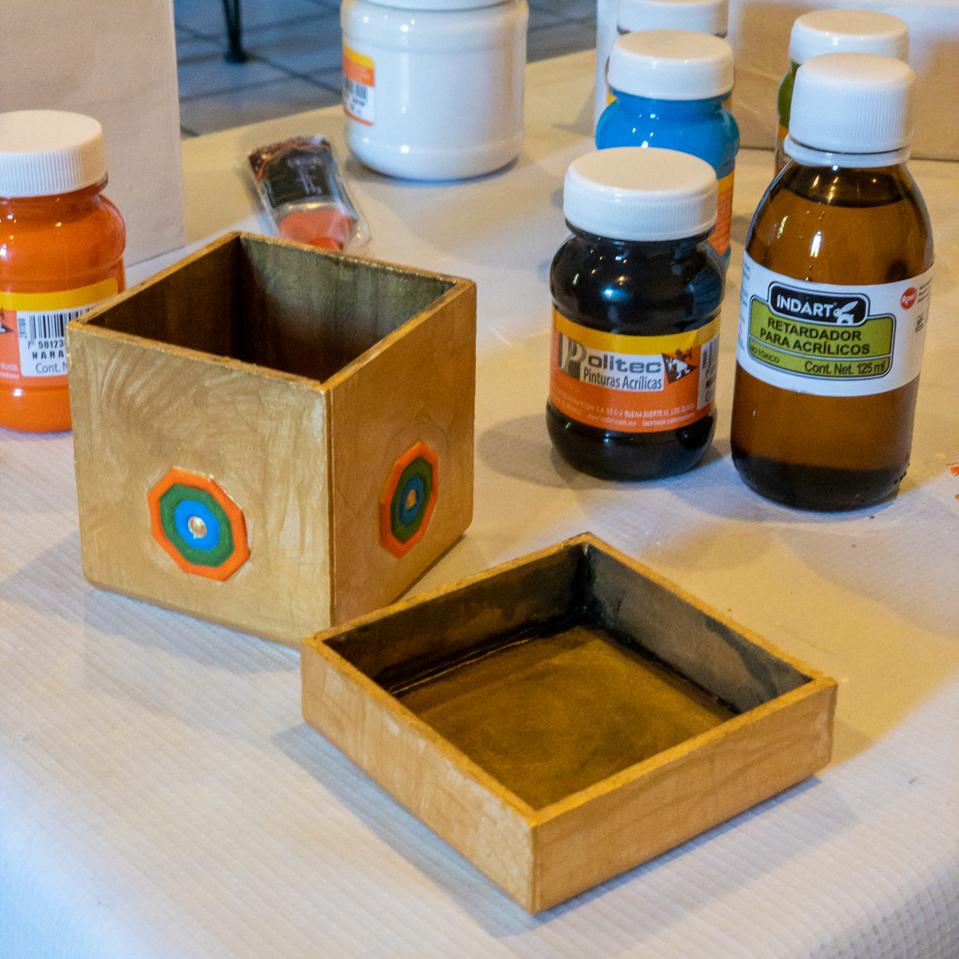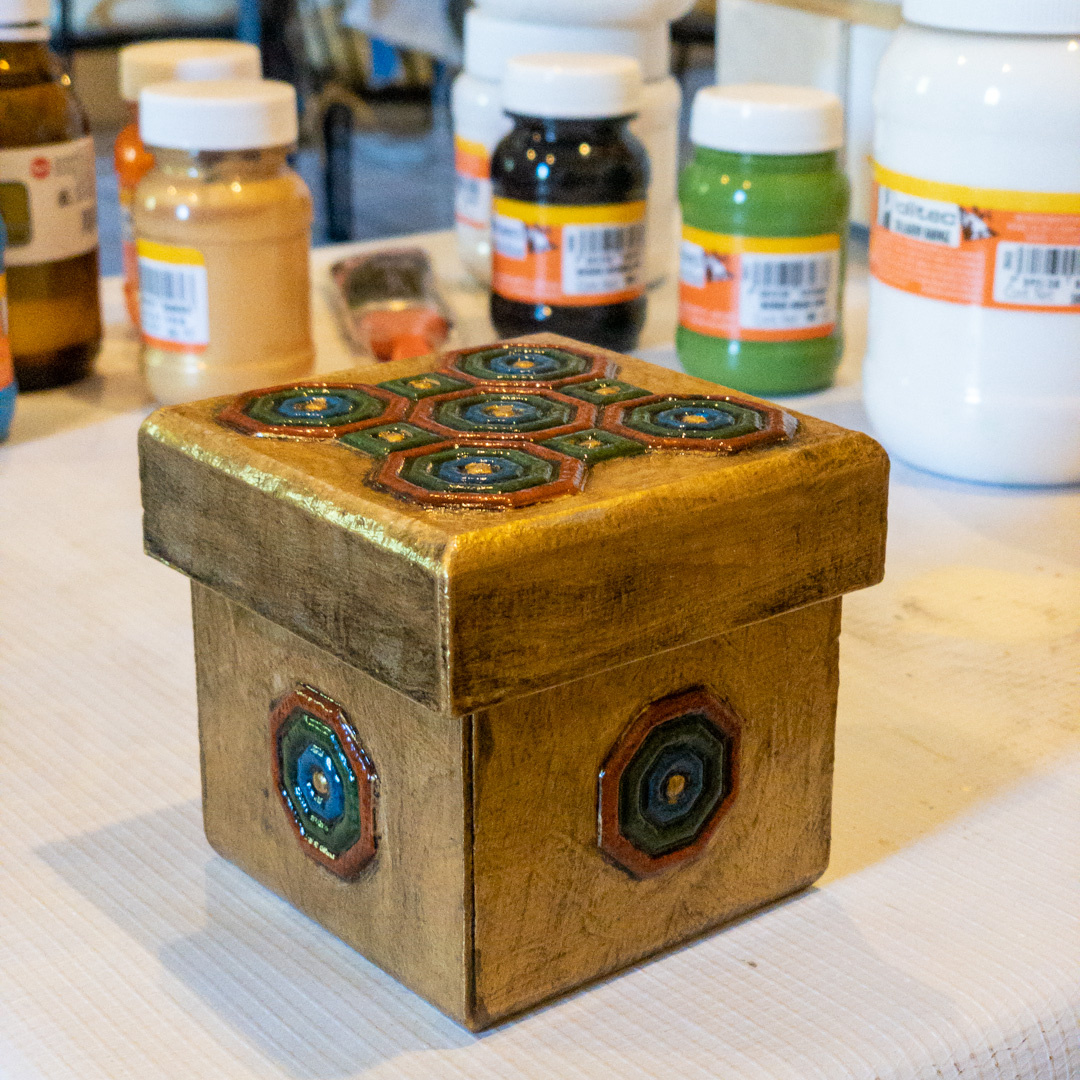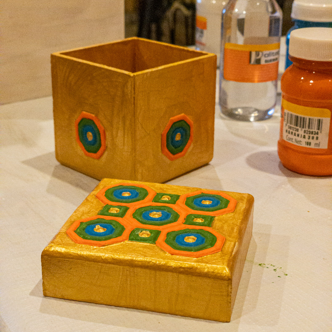 I finished painting the box using gold paint.