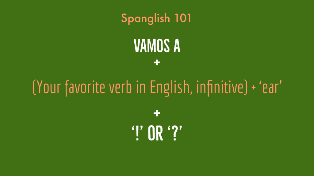 ¡De nalgas! = Somebody is bending over… (This is a wordplay between ‘nada,’ which means ‘nothing,’ and ‘nalgas,’ which means ‘buttocks,’ and it’s a way to be either silly or to convey that you mean horizontal business!)
