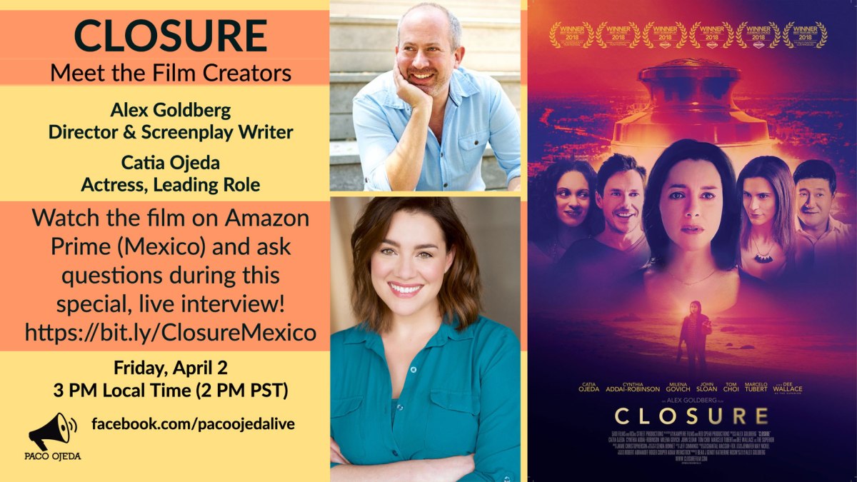 Tune in to a special live interview with ‘Closure’ film creators Alex Goldberg and Catia Ojeda this Friday at 3 pm local time! Use this link: https://www.facebook.com/pacoojedalive/posts/130330399103140
