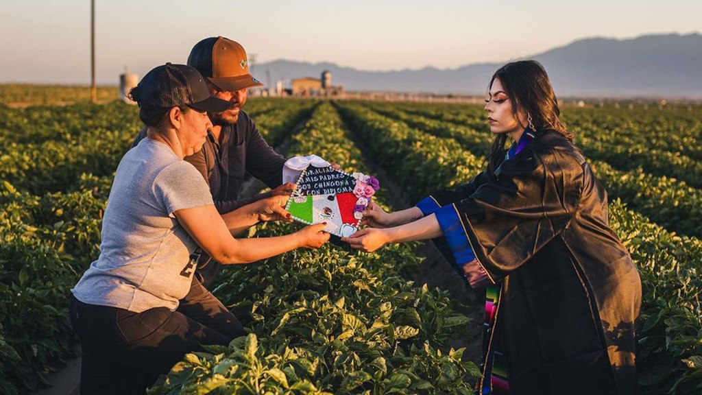 Mexican girl poses for graduation photos in the US fields where her parents made it all possible for her. https://www.informador.mx/internacional/Viral-Joven-hace-sus-fotografias-de-graduacion-en-la-siembra-donde-trabajan-sus-padres-en-EU-20210622-0052.html