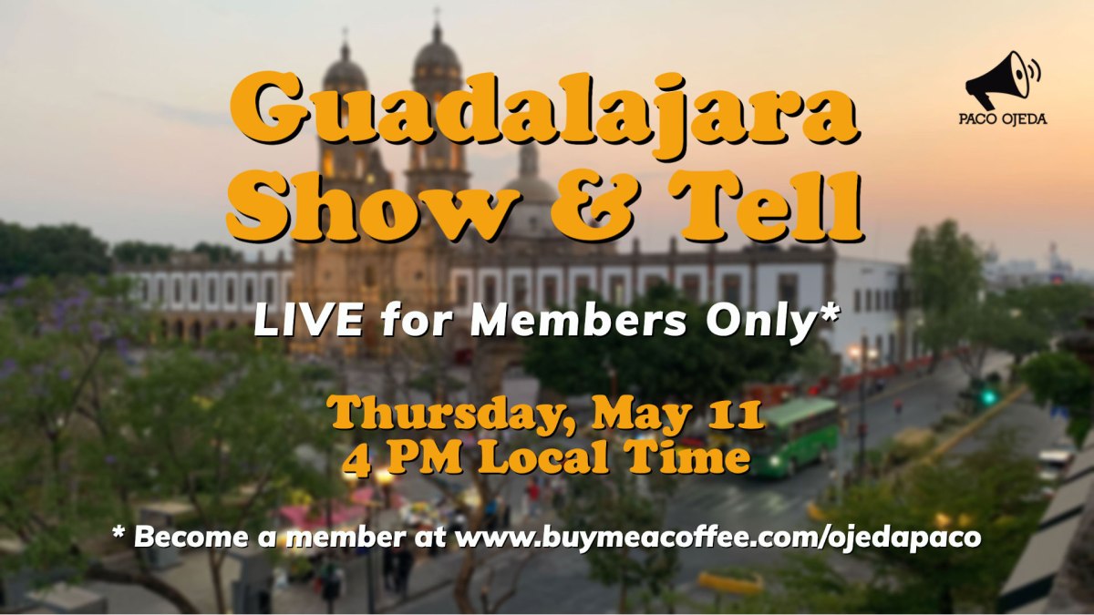 TODAY: Don’t miss our members-only special live broadcast at 4 PM featuring a Guadalajara Show & Tell from our experience this past weekend! The link for the watch page will be shared tomorrow after the regular morning broadcast. Here is the watch page announcement: https://www.buymeacoffee.com/ojedapaco/our-latest-guadalajara-show-tell-afternoon