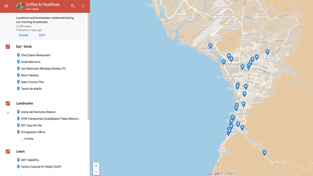 It all started with Walking Wednesday, where we feature walk through different Puerto Vallarta neighborhoods in our morning broadcasts to learn more about their unique features. Then we started featuring maps of our routes.
