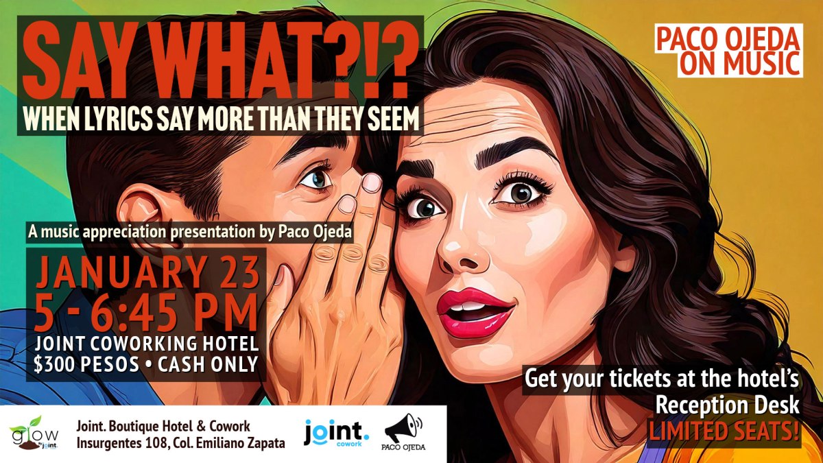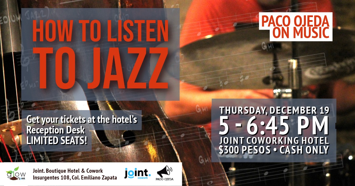 All presentations take place on Thursdays at the Joint Boutique Hotel & Cowork, located at Insurgentes 108, Colonia Emiliano Zapata. Tickets for the presentations can be purchased in advanced at the Hotel’s Reception Desk.